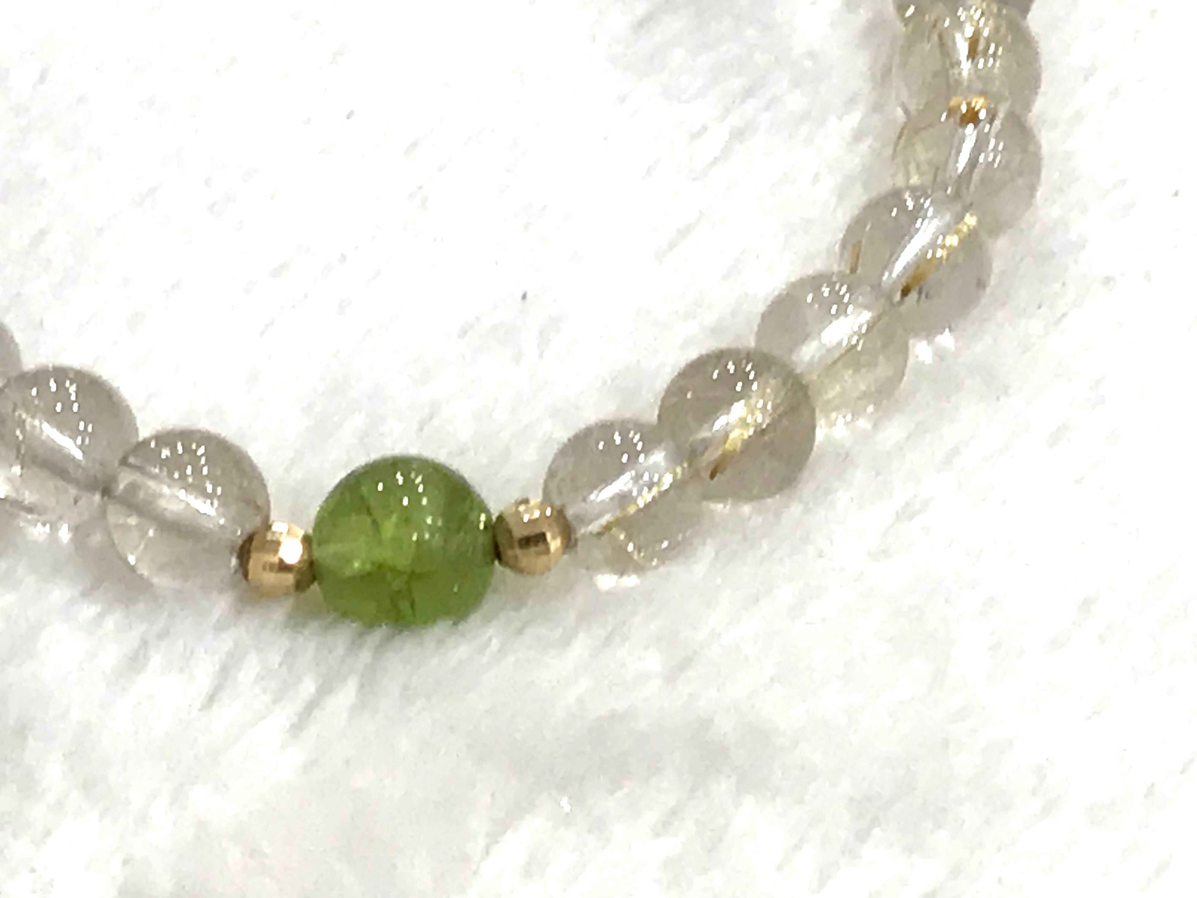 高品質のペリドット7mmとルチルクオーツを組み合わせたブレスです。